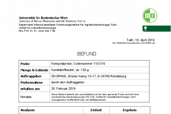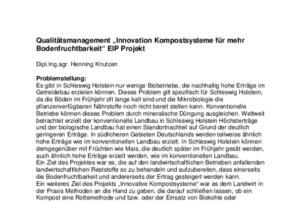 Die Praxisversuche haben ergeben, dass der Einsatz von Komposten einen positiven Einfluss auf die Bodenfruchtbarkeit hat und der Einsatz somit lohnenswert ist. In trockenen Anbaujahren empfiehlt sich das Ausbringen von Komposttees.