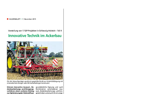 Landwirte stellen sich zunehmend die Frage, inwieweit innovative Verfahren in den Bereichen Aussaat, Bodenbearbeitung und Düngung zur Optimierung der Stickstoffausnutzung in norddeutschen Ackerbausystemen beitragen können. Insbesondere Marktfruchtbaubetriebe, die Wirtschaftsdünger aus Überschussregionen aufnehmen möchten, sind auf technische Innovationen in diesen Bereichen angewiesen. Zwar liegen zu einzelnen Verfahren bereits Erfahrungen aus anderen Regionen Europas vor, jedoch wurden diese bislang nicht unter den spezifischen Standortbedingungen Schleswig-Holsteins erprobt oder wissenschaftlich validiert.