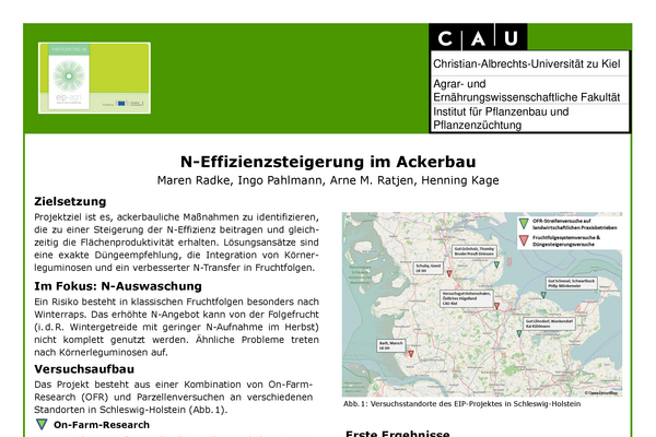 Ziel des Innovationsprojektes war es, praxistaugliche Maßnahmen zu identifizieren und zu demonstrieren, die Nährstoffausträge aus dem Ackerbau wirksam reduzieren können. Im Mittelpunkt standen dabei der Einfluss der Fruchtfolgegestaltung auf den Stickstofftransfer zwischen den Kulturen und eine daran angepasste, optimierte Stickstoffdüngung.