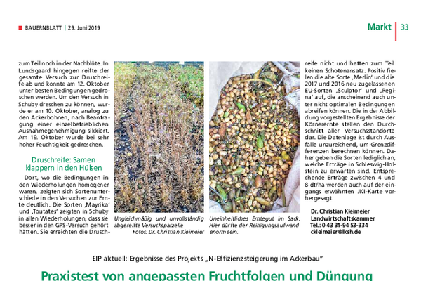 Es konnte eindeutig aufgezeigt werden, dass eine Erweiterung der Fruchtfolge sowie der gezielte Einsatz von Zwischenfrüchten zur Reduktion des Stickstoffaufwandes in der Fruchtfolge und zur Minderung von Stickstoffverlusten beitragen können.