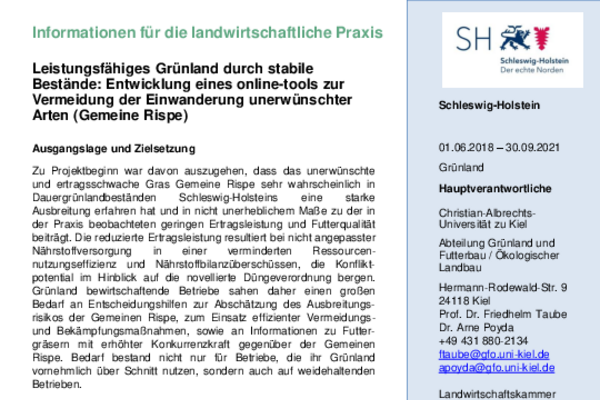 Leistungsfähiges Grünland durch stabile bestände: Entwicklung eines online-tools zur Vermeidung der Einwanderung unerwünschter Arten (Gemeine Rispe)