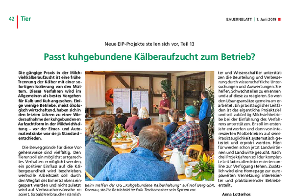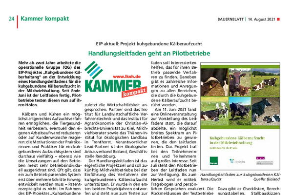 Vorrangiges Ziel des Projekts war die Entwicklung eines Leitfadens zur kuhgebundenen Kälberhaltung, der interessierte Betriebe sowohl bei der Einführung als auch bei der Weiterentwicklung des Verfahrens unterstützt.
