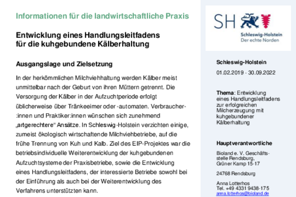 Entwicklung eines Handlungsleitfadens zur erfolgreichen Milcherzeugung mit kuhgebundener Kälberhaltung