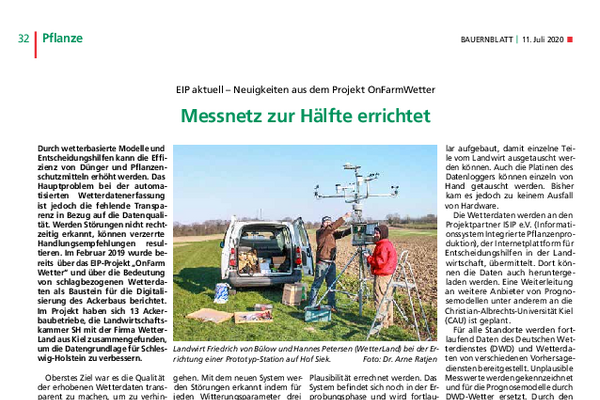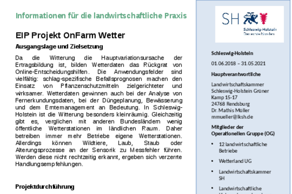 Mit der Digitalisierung fließen wissenschaftliche Erkenntnisse zunehmend über Online-Tools und Prognoseverfahren in die landwirtschaftliche Praxis ein. Dies verbessert die Bestandsführung und entlastet die Umwelt. In Schleswig-Holstein ist die Dichte öffentlicher Wetterstationen jedoch gering und viele Stationen erfassen die tatsächlichen Feldbedingungen nur unzureichend. Fehlerhafte Messungen – insbesondere bei privaten Stationen – bleiben oft unbemerkt und können zu falschen Handlungsempfehlungen führen.